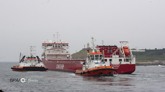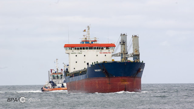 Auxiliado en la entrada por el remolcador///Assisted in entry by the tugboat;